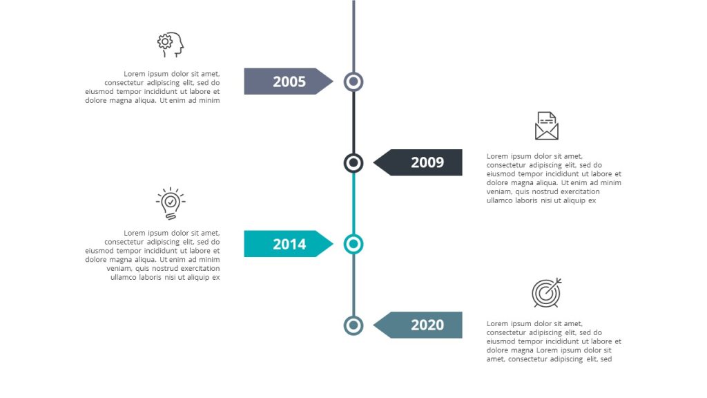 本作品内容为竖版简约时间发展历程, 请使用软件PowerPoint(2019)打开, 作品中文字及图均可以修改和编辑,图片更改请在作品中右键图片并更换,文字修改请直接点击文字进行修改,也可以新增和删除作品中的内容, 欢迎使用云设计。