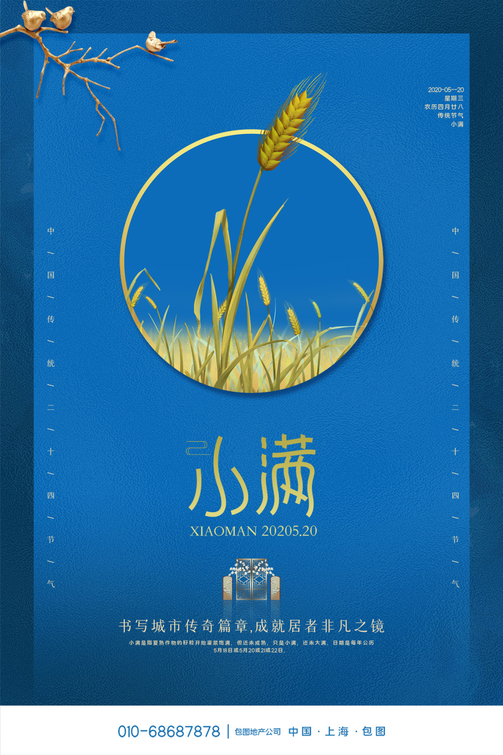 本作品内容为飞速生长的麦穗小满节气蓝色背景主题海报, 请使用软件PowerPoint(2019)打开, 作品中文字及图均可以修改和编辑,图片更改请在作品中右键图片并更换,文字修改请直接点击文字进行修改,也可以新增和删除作品中的内容, 欢迎使用云设计。
