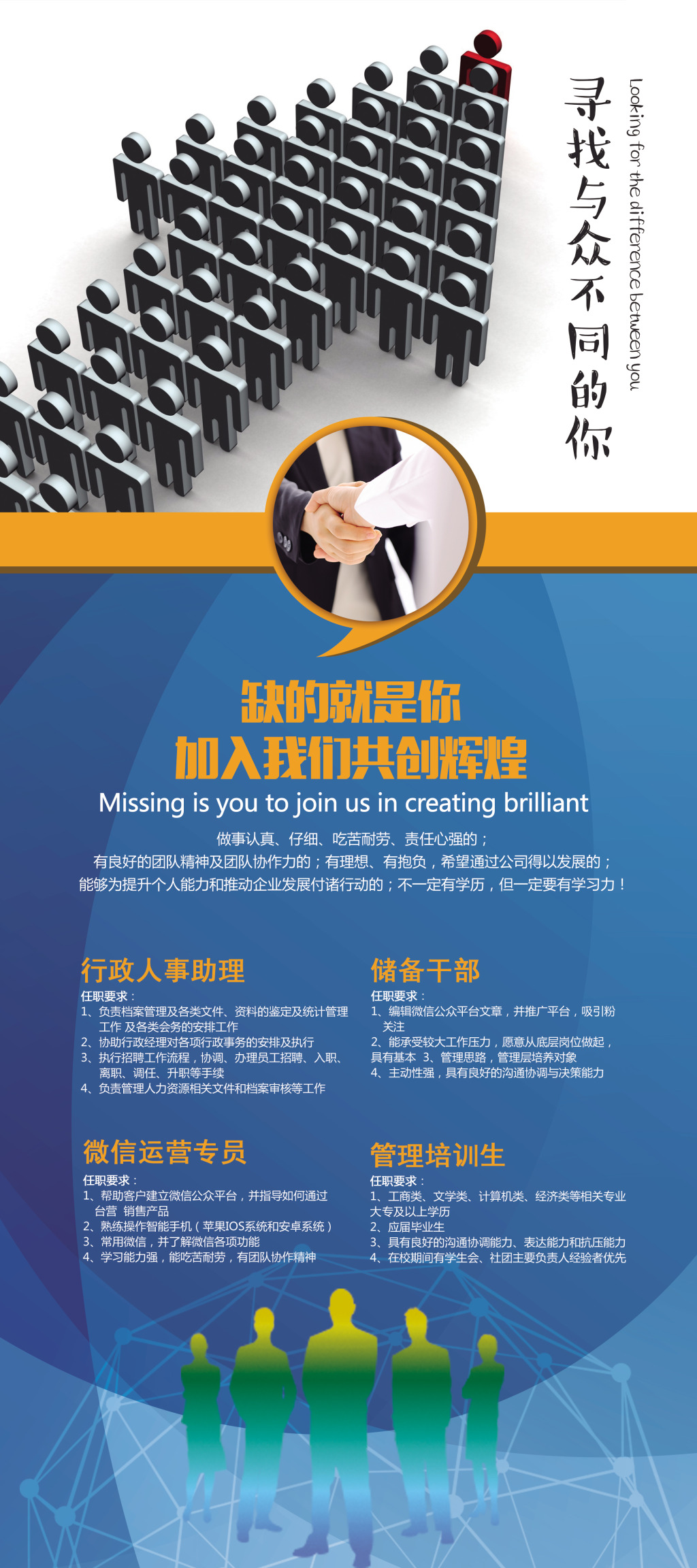 本作品内容为互联网公司招聘企业宣传易拉宝, 请使用软件PowerPoint(2019)打开, 作品中文字及图均可以修改和编辑,图片更改请在作品中右键图片并更换,文字修改请直接点击文字进行修改,也可以新增和删除作品中的内容, 欢迎使用云设计。