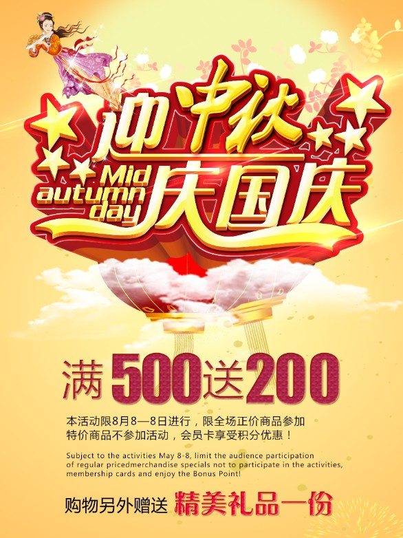 本作品内容为好礼送不停 中秋国庆齐相庆, 请使用软件PowerPoint(2019)打开, 作品中文字及图均可以修改和编辑,图片更改请在作品中右键图片并更换,文字修改请直接点击文字进行修改,也可以新增和删除作品中的内容, 欢迎使用云设计。