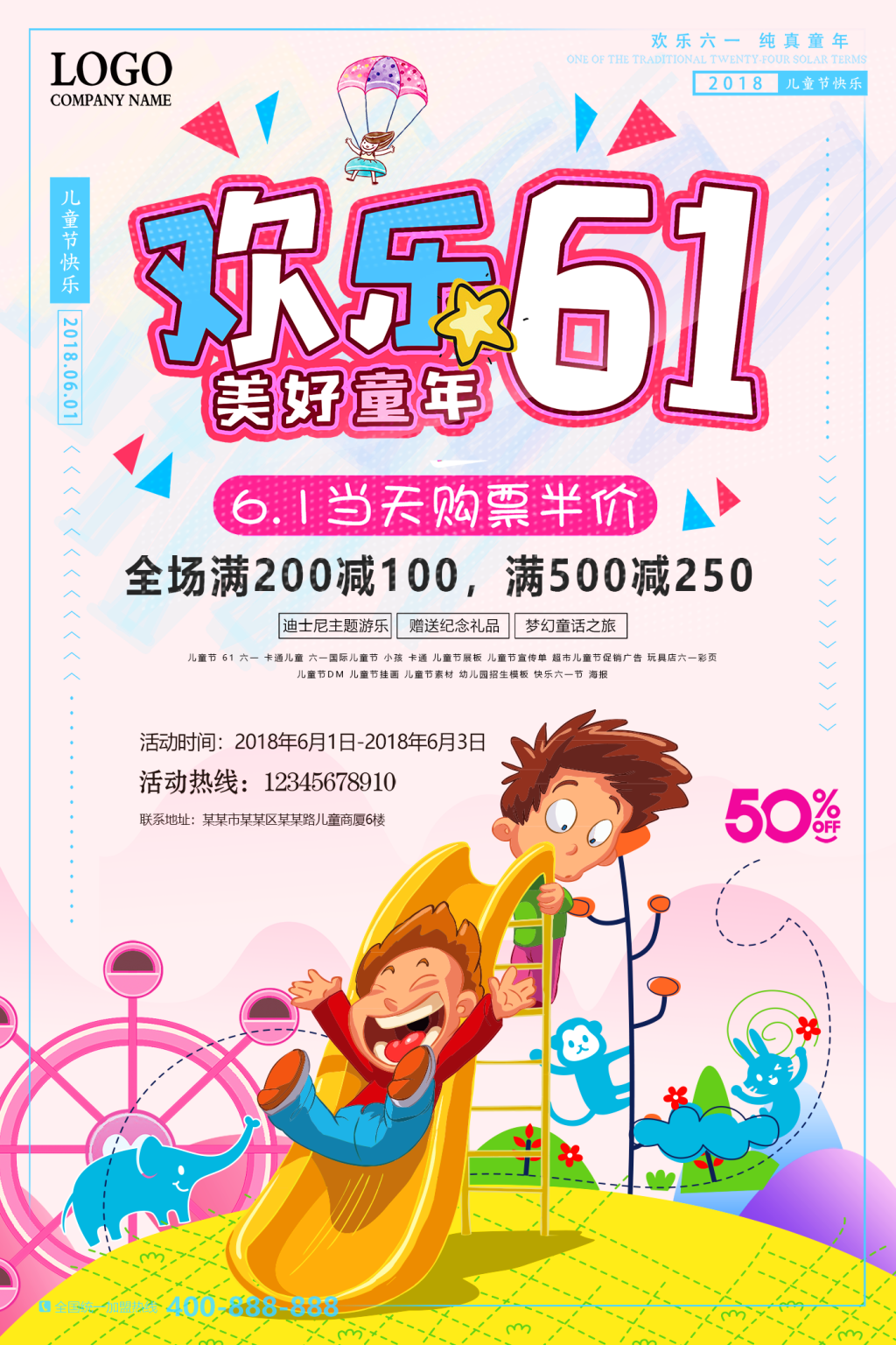 本作品内容为欢乐六一儿童节 优惠来袭 创意海报, 请使用软件PowerPoint(2019)打开, 作品中文字及图均可以修改和编辑,图片更改请在作品中右键图片并更换,文字修改请直接点击文字进行修改,也可以新增和删除作品中的内容, 欢迎使用云设计。