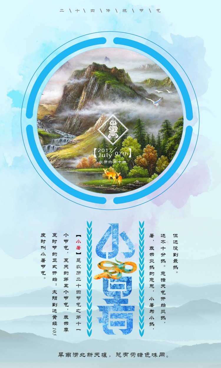 本作品内容为二十四节气小暑:欢乐一夏, 请使用软件PowerPoint(2019)打开, 作品中文字及图均可以修改和编辑,图片更改请在作品中右键图片并更换,文字修改请直接点击文字进行修改,也可以新增和删除作品中的内容, 欢迎使用云设计。
